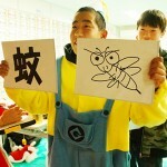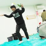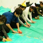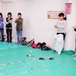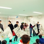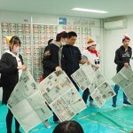 ルールは簡単。新聞紙を片手だけ使って、丸めるスピードを競います。