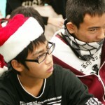 今年は清水先生がサンタ・後藤先生がサンタっぽいエプロン、