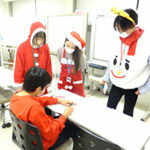 ↑クリスマスのコスチュームを着用した非常勤講師陣に