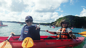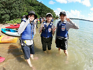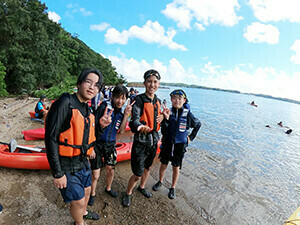 この集合写真はカヤックで上陸した別の海岸で撮影しました^^
