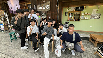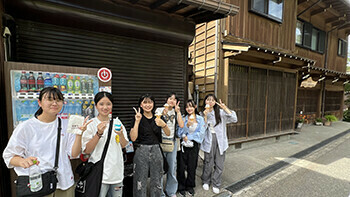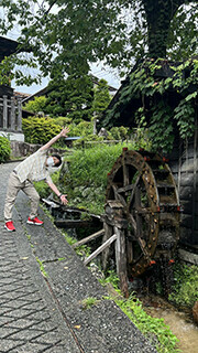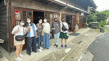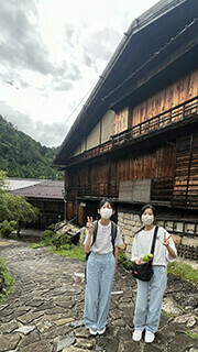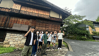 最初の目的地は中山道「妻籠宿」。中山道六十九次の42番目の宿場町です。(垂井宿は57番目)情緒あふれる町並みを歩けば、江戸時代にタイムスリップしたように感じます。生徒の皆さんは・・・、まぁ、腹ごしらえの方が優先ですかね^^;ちょうど雨も止んでいて、のんびり過ごすことができました。