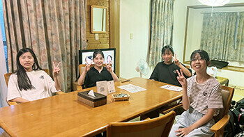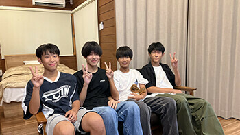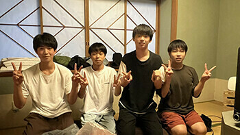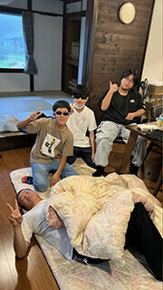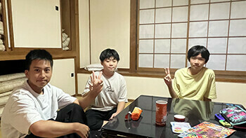 講師陣は、連絡事項を伝えたりしながら各部屋を巡回!お菓子の差し入れをもらうなど、大歓迎を受けました。え?食べすぎじゃないかって??大丈夫です。山道をゼェゼェ言いながら各部屋(家)を回ったので相当なカロリーを消費したはずです。このブログを読んでいる皆さんは、スマートになった和田と清水に驚いていることでしょう(笑)