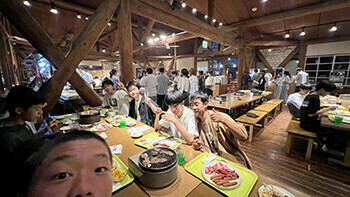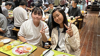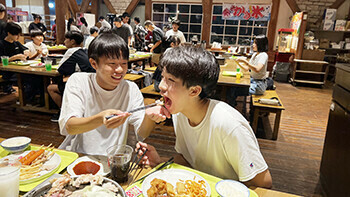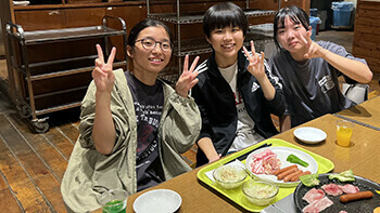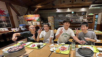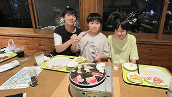 夕食は焼肉&バイキングで~す!やっぱり大勢で食べる食事は美味しくて楽しいですよね。食べ盛りの皆さんとは言え、アニメに出てくるような山盛りのごはんに、肉、肉、肉・・・。持ち込んだお菓子もあるし、夜食用のカップラーメンも・・・。どうやらこのブログを読んでいる皆さんは、そんなにスマートにはなっていないでしょう(笑)