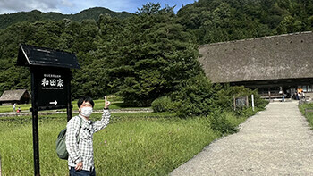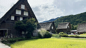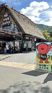さて、お昼ごろになると雨が止むどころか、暑い日差しが照り付けてきました。とっても良い天気です!白川郷の合掌造り集落は、世界遺産に登録されています。間近で見ると、すごい迫力です。それでいて、古き良き日本の伝統を感じられるのは不思議ですね。晴れてくれたのは本当にうれしいのですが、ちょっと暑すぎ・・・(´・ω・`)少し歩いただけで汗が出てきます。皆さん、ソフトクリームやかき氷で涼をとっていました。