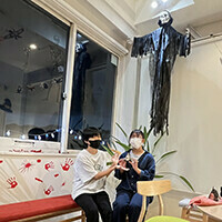 2年生の皆さんも、ハロウィンの飾り付けに驚いていました。
