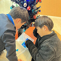 「見て、見て!ツリーの飾り触ったら、