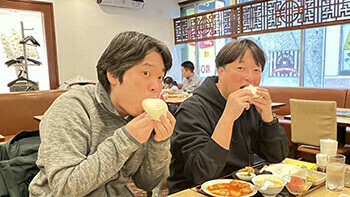 先生班は、大阪名物の豚まんのお店へ。