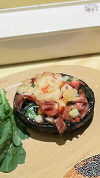 な、なんとピザ生地ではなく、巨大なマッシュルームがひっくり返しになり、