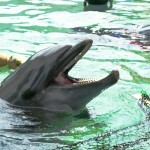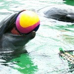 ・清水先生、イルカに魅了さる。ボールを投げる様子を撮影したくて、炎天下、