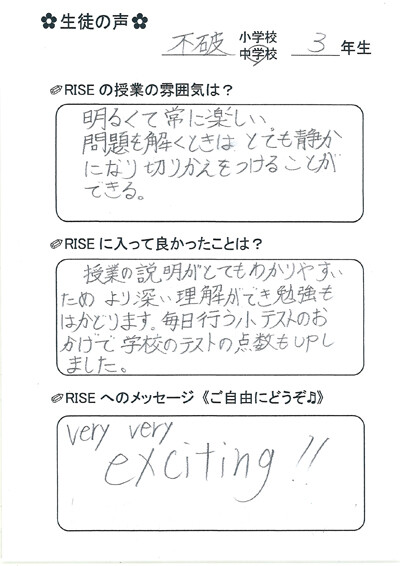 不破中学校中学3年生|岐阜県不破郡垂井町で小学生・中学生の進学や受験のための学習塾に通うなら【THE学習空間RISE】