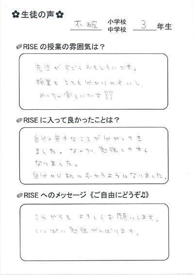 不破中学校中学3年生|岐阜県不破郡垂井町で小学生・中学生の進学や受験のための学習塾に通うなら【THE学習空間RISE】