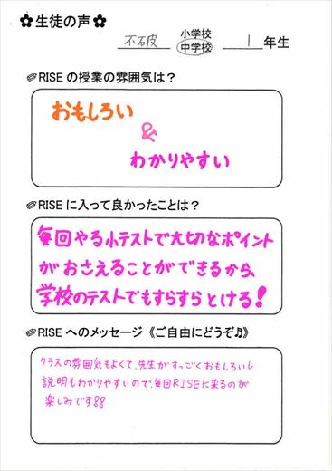 不破中学校中学1年生|岐阜県不破郡垂井町で小学生・中学生の進学や受験のための学習塾に通うなら【THE学習空間RISE】